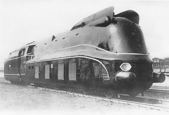 erhaltener Stromlinienschale. Nach dem Kriegsende waren zwar die meisten Loks beschädigt, aber durch