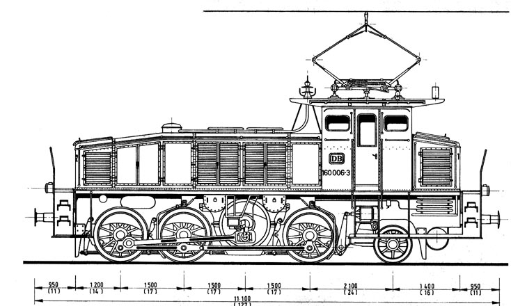 entspricht ebenfalls denen der beiden anderen Baureihen. Der Stromabnehmer war zunächst mit zwei ca. 140cm